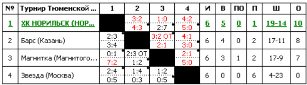 ![]() Турнир Тюменской области - 2025 Традиционный предсезонный турнир, посвящённый Дню образования Тюменской области, проходит в Тюмени, на льду «Дворца спорта». ________________________________________ ________________________________________ Регламент турнира: - Участвует 4 команды, "Рубин" Тюмень - в качестве обязательного участника (хозяин турнира); - Турнир будет проходить по круговой системе - все команды сыграют по два матча друг с другом (дома - на выезде); - По итогам всех сыгранных матчей и набранных в них очков, определяется победитель и призёры; - Все матчи турнира проходят по правилам регламента ВКХЛ. ________________________________________ ________________________________________ Участники: 1. Maximus - Магнитка (Магнитогорск) 2. Tato:3 - Звезда (Москва) 3. Chao_Chao - ХК Норильск (Норильск) 4. Pashok - Барс (Казань) ________________________________________ ________________________________________ Турнирная таблица: ![]() ________________________________________ ________________________________________ История турнира: Турнир Тюменской области 2023 г.: Торос (Нефтекамск) - Dolzh1k Турнир Тюменской области 2025 г.: ??? ________________________________________ ________________________________________ Форма заявки на турнир: 1. Ник 2. Команда (За которую выступаешь в чемпионате ВХЛ)