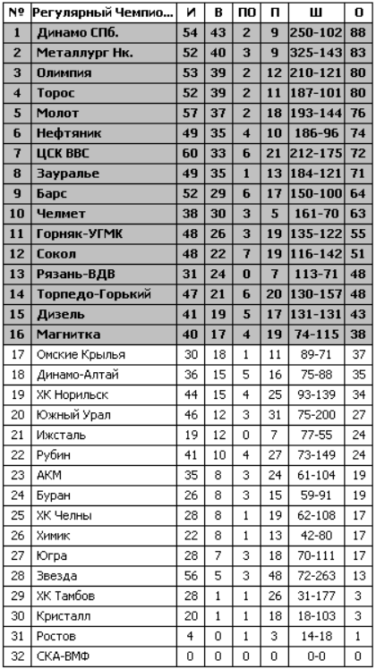 ![]() __________________________________________________ __________________________________________________ Турнирная таблица регулярного чемпионата ВХЛ: ![]() ШАХМАТКА РЕЗУЛЬТАТЫ МАТЧЕЙ __________________________________________________ __________________________________________________ Статистика регулярного чемпионата ВХЛ: ![]() __________________________________________________ __________________________________________________ Сетка плей-офф ВХЛ: --- __________________________________________________ __________________________________________________ Статистика плей-офф ВХЛ: ---