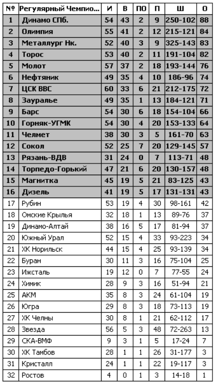 ![]() __________________________________________________ __________________________________________________ Турнирная таблица регулярного чемпионата ВХЛ: ![]() ШАХМАТКА РЕЗУЛЬТАТЫ МАТЧЕЙ __________________________________________________ __________________________________________________ Статистика регулярного чемпионата ВХЛ: ![]() __________________________________________________ __________________________________________________ Сетка плей-офф ВХЛ: --- __________________________________________________ __________________________________________________ Статистика плей-офф ВХЛ: ---
