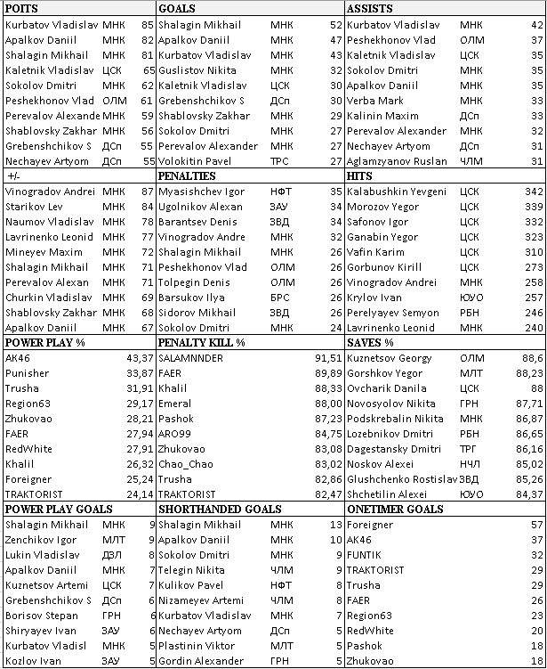 ![]() __________________________________________________ __________________________________________________ Турнирная таблица регулярного чемпионата ВХЛ: ![]() ШАХМАТКА РЕЗУЛЬТАТЫ МАТЧЕЙ __________________________________________________ __________________________________________________ Статистика регулярного чемпионата ВХЛ: ![]() __________________________________________________ __________________________________________________ Сетка плей-офф ВХЛ: --- __________________________________________________ __________________________________________________ Статистика плей-офф ВХЛ: ---