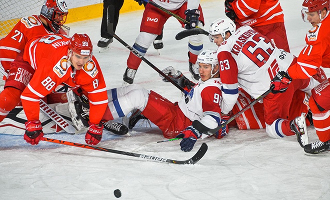 1,03:40,GOAL (0:1),YAR,Korshkov Egor,"Savchenko Roman, Kayumov Artur" 1,09:18,GOAL (1:1),ING,Makeyev Alexei,Bocharov Stanislav 1,14:50,PEN,ING,Tryamkin Nikita,Tripping (Minor) 2,01:23,GOAL (1:2),YAR,Kayumov Artur,"Lander Anton, Ohtamaa Atte" 2,07:13,GOAL (1:3),YAR,Korshkov Egor,"Paajarvi Magnus, Marchenko Alexey" 2,07:54,GOAL (2:3),ING,Bocharov Stanislav,"Protapovich Alexander, Makeyev Alexei" 2,18:38,PEN,YAR,Barantsev Denis,Interference (Minor) 3,15:55,GOAL (3:3),ING,Protapovich Alexander,"Arzamastsev Zakhar, Makeyev Alexei" 3,19:10,GOAL (3:4),YAR,Ivanov Georgy,"Slepets Kirill, Osipov Maxim" ![]() 3-ий матч: Локомотив 4 : 8 Автомобилист Матч в котором было забито очень много шайб, один из тяжёлых матчей для Автомобилиста. Удалось повести в счёте, но после этого чёрная полоса, в которую входили: удаления, автогол и буллит, который реализовал Николай Коваленко. Полный провал Автомобилиста в первой половине игры, вроде уже и сломались, мысленно готовились к следующему матчу, счёт 4:2 был уже к середине второго периода, хоккеисты Авто в очередной раз нашли силы для камбека, второй период завершился со счётом 4:4, наверное, это и сломало Алгора в какой-то степени. Дальше пошёл разнос, залетело всё что возможно в ворота Локо, все шайбы в 3-ем периоде на счету 1-ого звена Автомобилиста, такой вот переворот в матче. Скрытый текстPeriod,Time,Goal/Penalty,Team,Player Name,Note